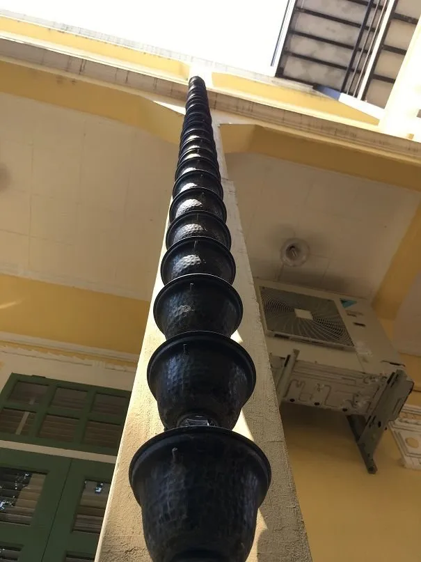 - 빗물 받이 연통 대신 작은 빈 화분을연결하여 만들었습니다.