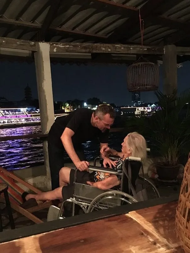 - 쥔장과 백발의 노인입니다. 노인은 쥔장의 할머니이십니다. 태국으로 모시고와서 쥔장이 봉양을 한답니다. 시끼가 점점 사람을 감동 시킵니다.