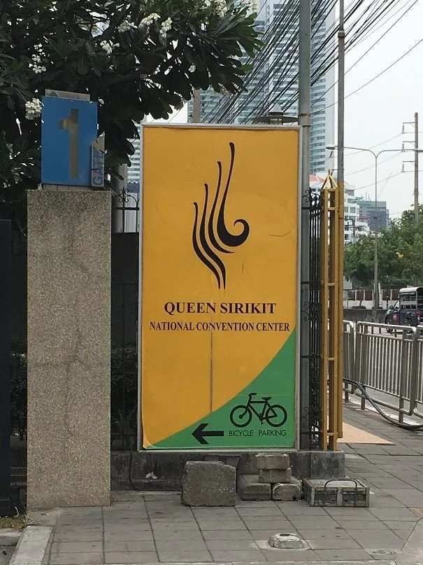 - 히마판은 오늘도 역시 자전거를 타고 가봅니다. 퀸 씨리낏 컨벤션 센터 쪽의 입구로 들어갑니다. 사인보드에는 자전거 전용 주자장이 안내되고있습니다.