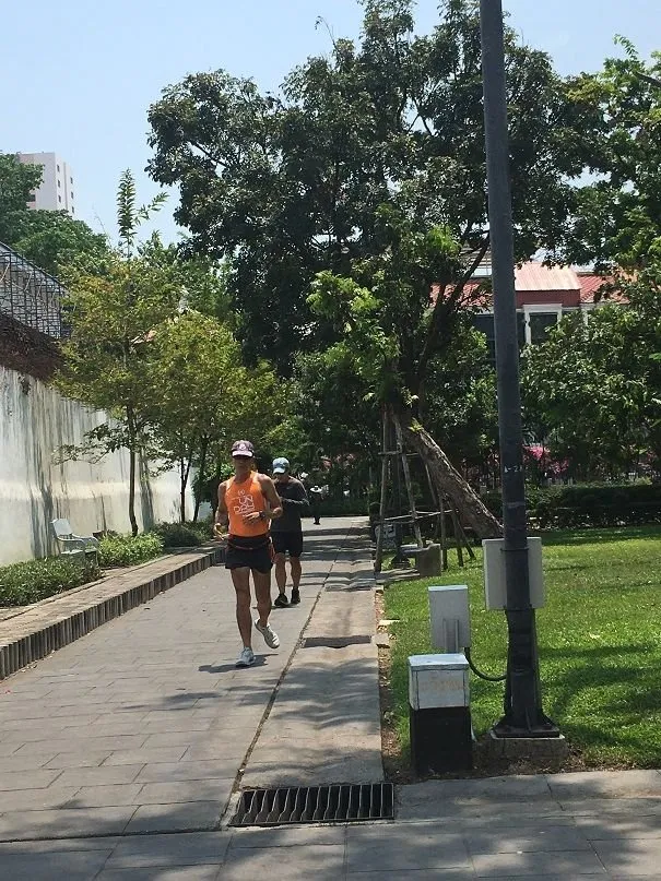 - 공원의 담을 따라서 조깅을 할수 있는 길을 만들어 놓았습니다. 대낮인데 운동을 하시는 분들이 있습니다. 이날 낮의 기온은 섭씨38도가 넘었습니다.