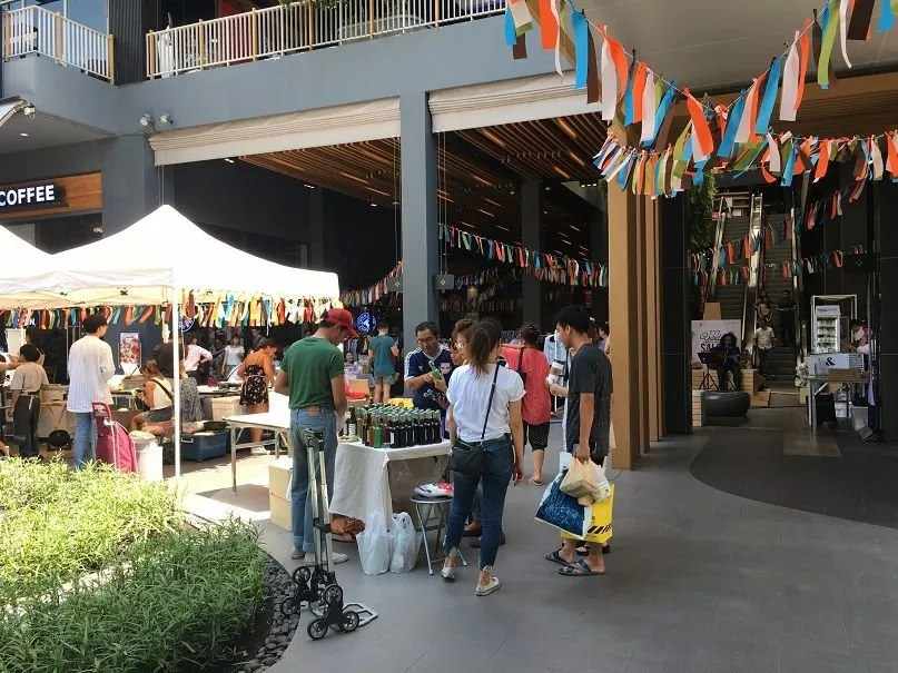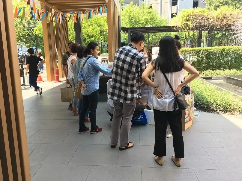 - 행사는 수쿰윗 온눗 거리에 있는 HABITO RESIDENCE 내의 MALL에서 열렸습니다. 주차장과 바로 붙어서 열려서인지 이른 시간인데도 방문객들이 많습니다.
