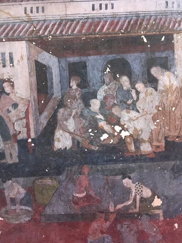 - 본당 벽화입니다. 우리의 법당 그림과는 많이 차이가 납니다. 이 벽화들은 부처님의 수많은 전생중에 각각 다른 열개의 전생을 표현하였다고 합니다. 히마판이 보기에는 다 똑같이 보입니다.
