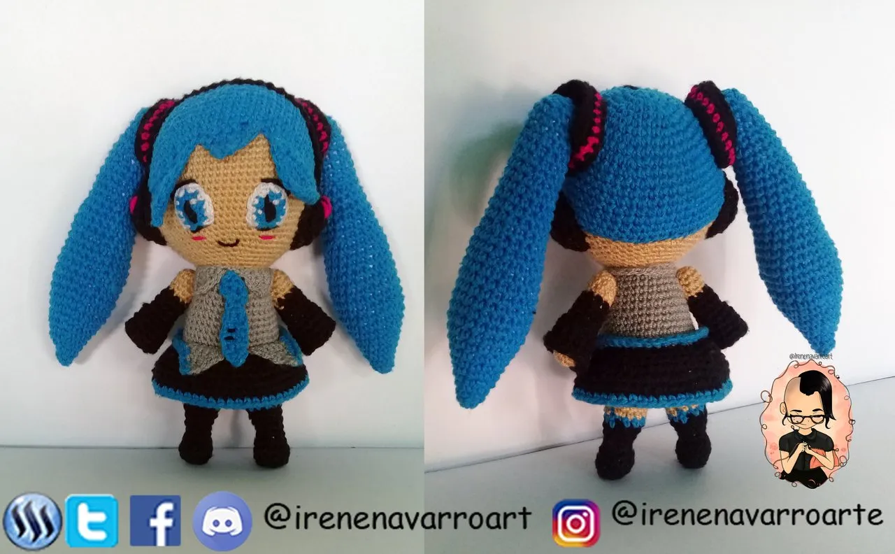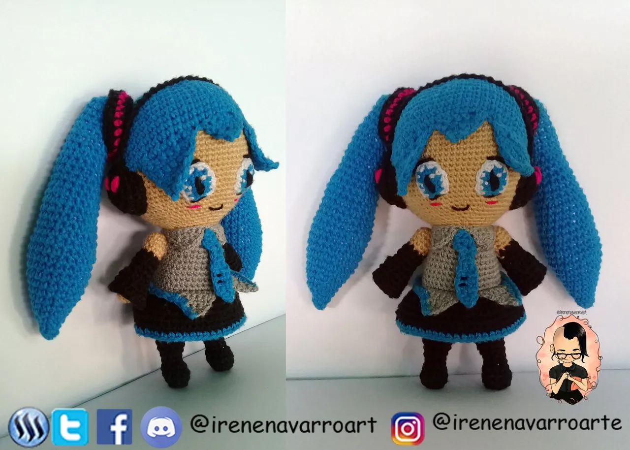 ¡Saludos! Hace un tiempo me encargaron este amigurumi, enviándome solo una imagen de referencia por la cual guiarme para hacer el muñeco, supuse en un principio que se trataba de algún personaje de anime, realicé la encomienda sin mucha preocupación hasta que una vez finalizado lo mostré a una amiga quien me dijo que se trataba de Hatsune Miku.