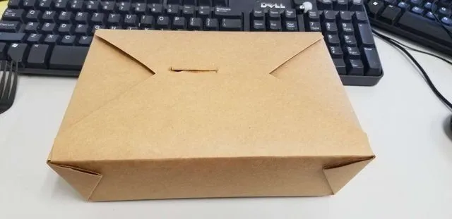 음식은 종이에 포장을 해서 담아 줍니다.