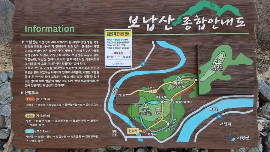 직진으로 향하면 북한강 경치를 감상하면서 걸을수 있고, 우측으로 내려오면 보납산 보광사가 있습니다.