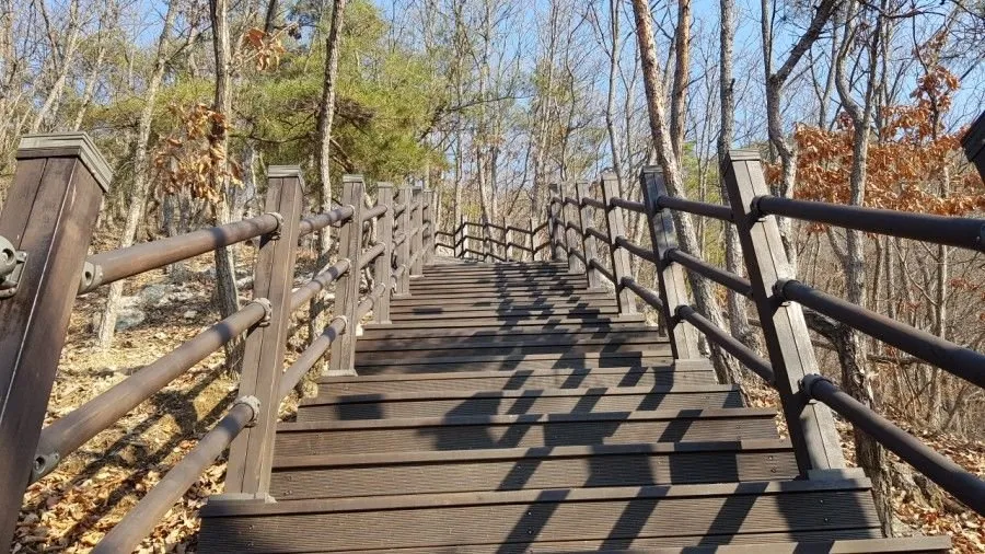 전체를 계단으로 하지 않고 안전띠를 해놓은 곳도 있습니다.