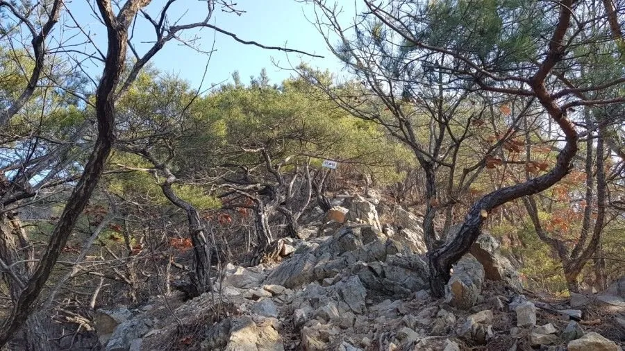 오르다 보니 암벽과 멋진 소나무가 나옵니다.