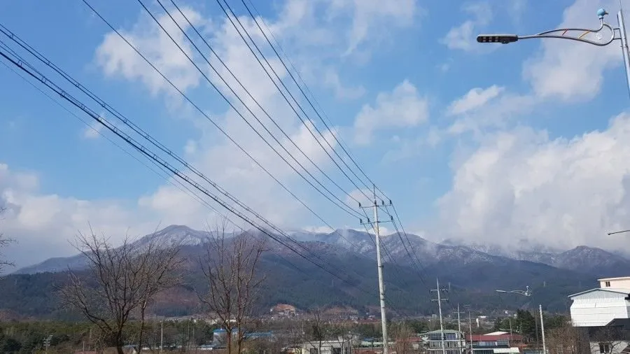 저멀리 산정상에 눈이 쌓이더니, 금방 파란 하늘을 보여줍니다.