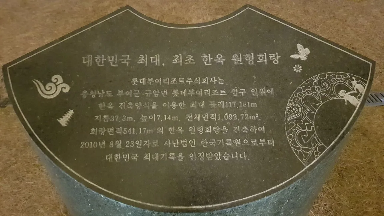 롯데부여리조트 입구에 있는것으로 2010년 8월 23일자로 사단법인 한국기록원으로부터 대한민국 최대기록을 인정받았다고 합니다.