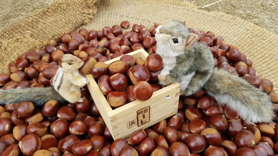 이곳은 공주에서 올라온 밤인데 아기 다람쥐가 밤을 물어가고 있내요.