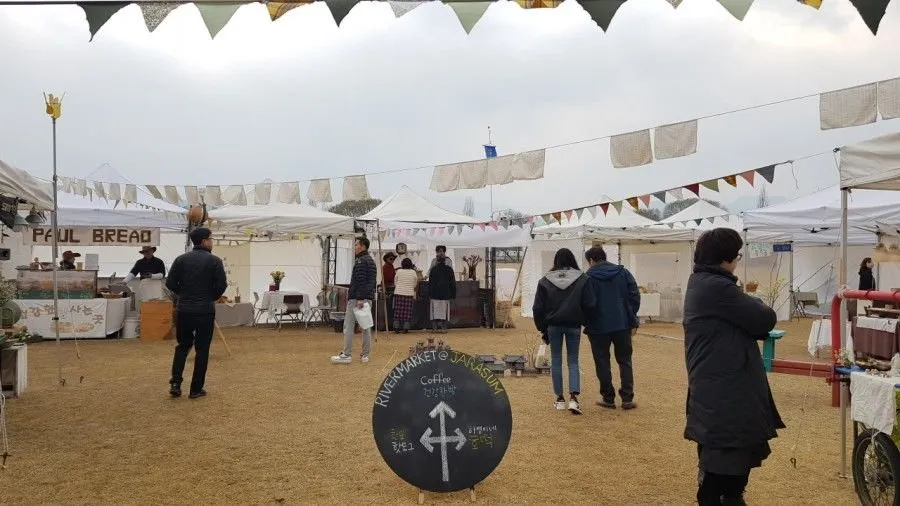 차를 주차하고 리버마켓이 펼쳐지는 자라섬 안으로 들어갑니다.