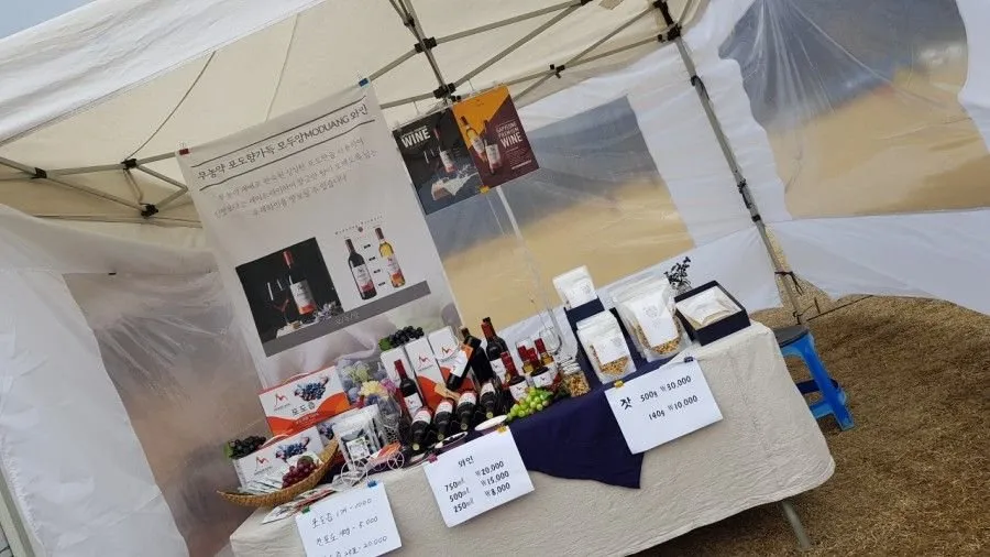 농가에서 직접 만든 와인도 판매를 하고, 잣도 판매를 합니다.