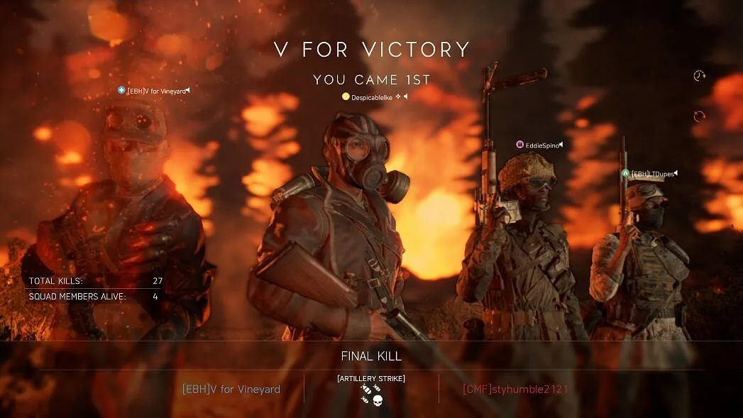 On the Screenshot that we have at the beginning we killed 27 players and we all survived. I don't recall how many kills I got but I remember that I was playing better on each match.