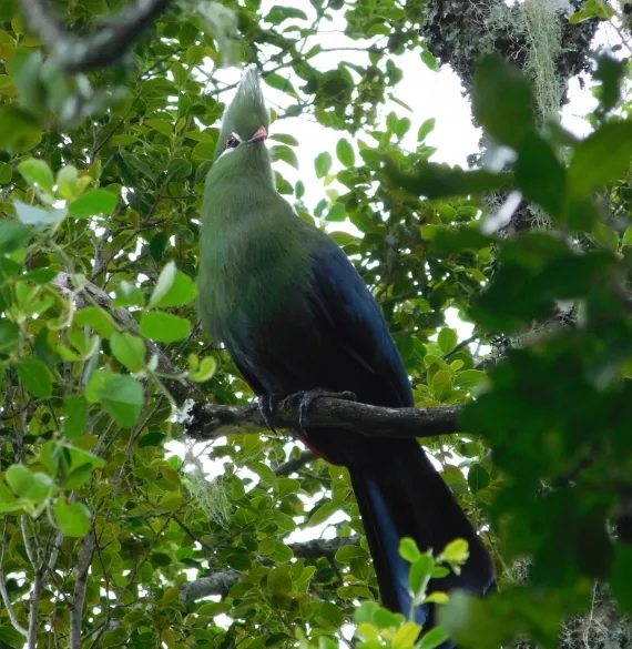 Knysna Loerie less obscured by leaves, but missing the crimson wings.