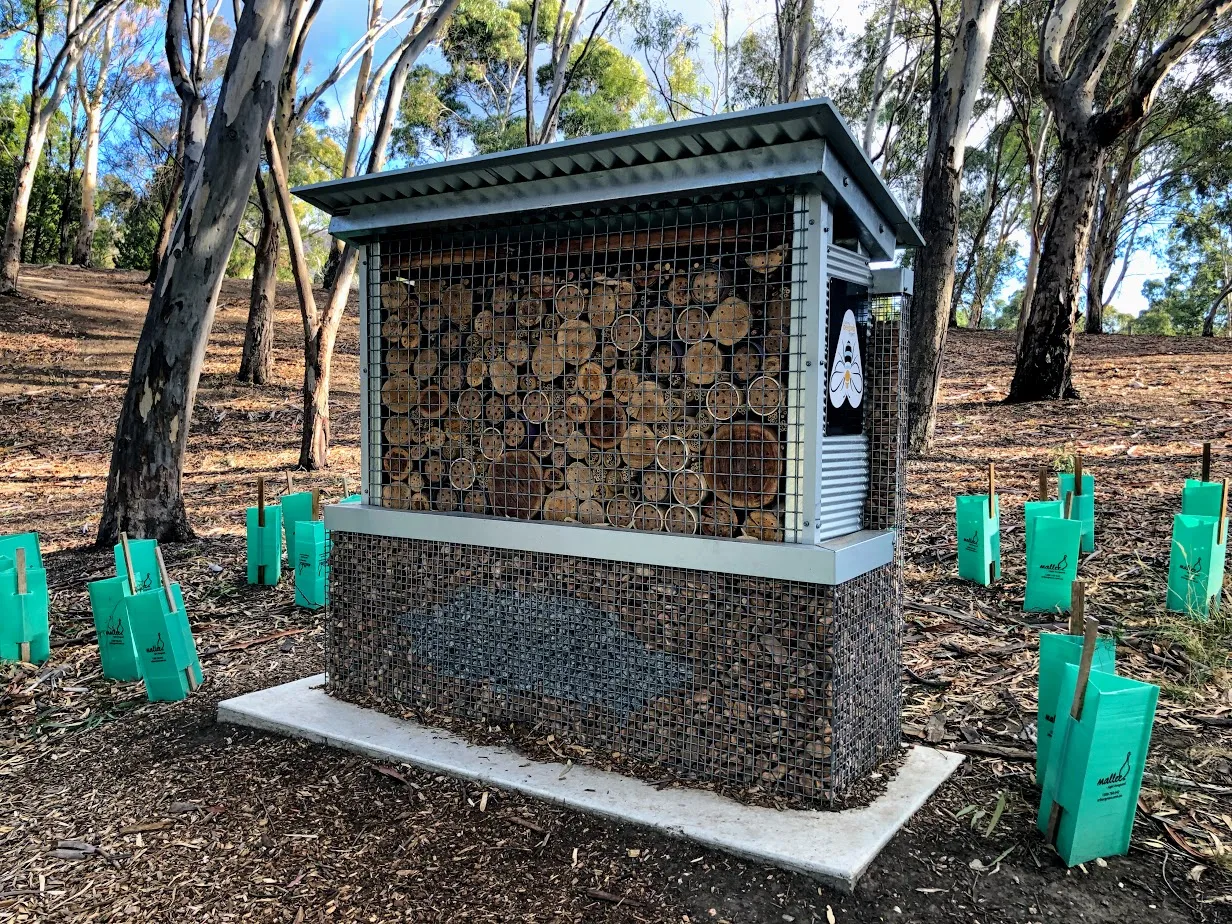 On my walk today i came across a Native Bee BnB. It was built by community volunteers as part of the River Torrens Recovery Project.