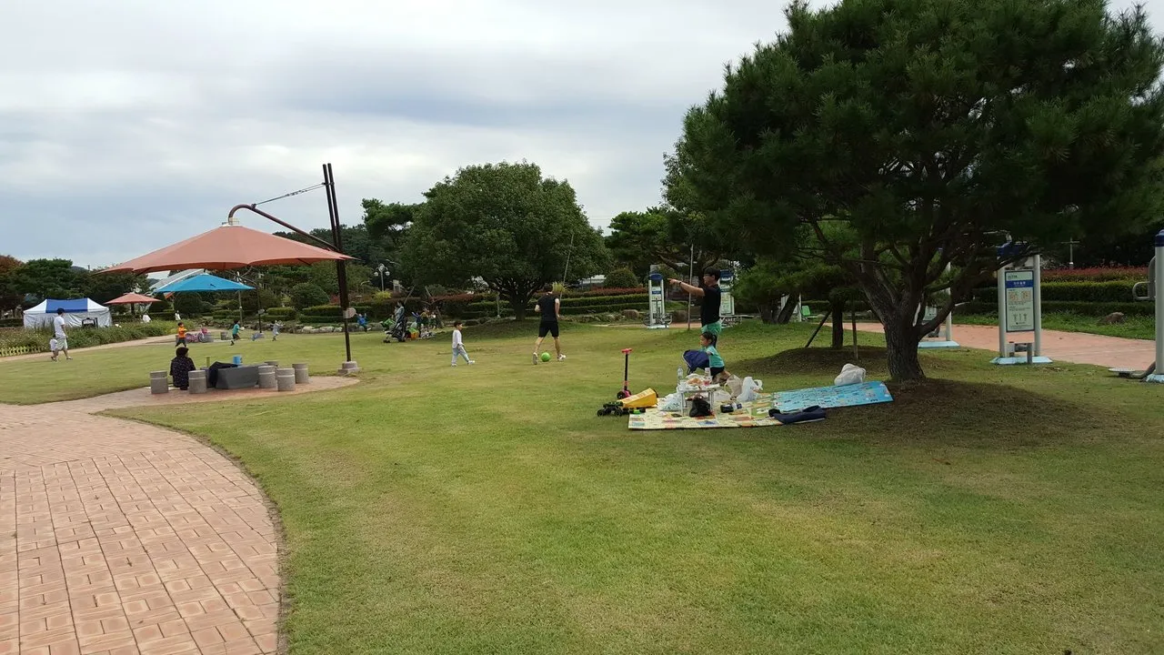 아주 넓은 잔디가 있어 편한데 돗자리나 그늘막 깔아도 되지요.