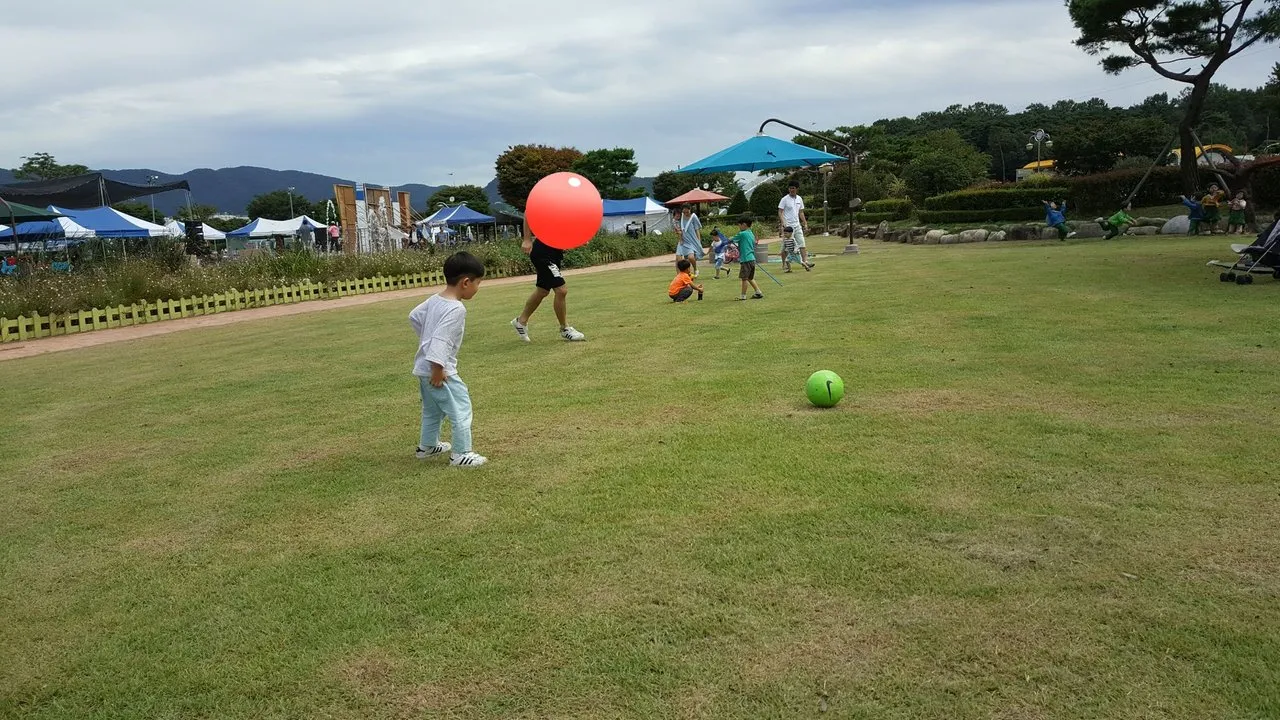 이 곳에 갈 때는 자전거, 킥보드, 공 등등 다 가져갑니다. 가면 다른 아이들도 다 타고 있기도 하고, 잔디가 넓고 안전해서 맘껏 뛰라고 하거든요.