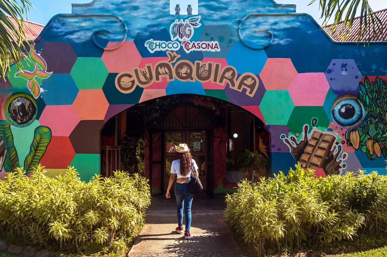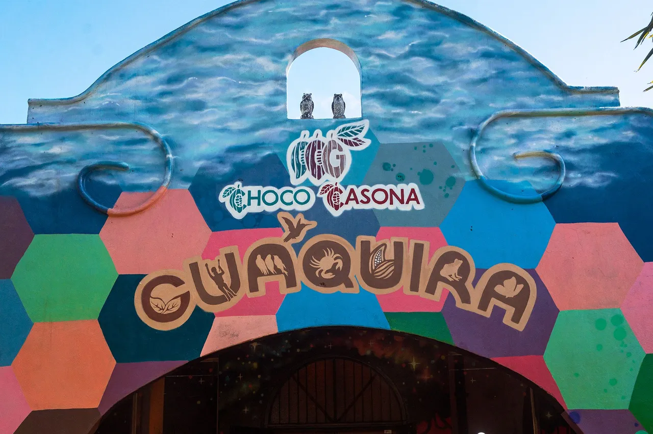 Now that we have explained a little about Marroquina, let's talk about Guaquira, which is usually the final destination for people. It is divided into two areas; the first is where we find the manufacture and processing of cocoa to make chocolate, one of the things that drives the market in our state, because we have incredible quality for it and the people who work with cocoa undoubtedly appreciate doing so, enjoy their work, and you can tell by the love with which they tell their stories. In this place, you can see many paintings that make up the place, and in all of them, you can see drawings related to cacao and chocolate, because it is a fundamental part of this place.