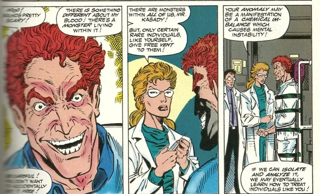 The new symbiote in connection with the psychopathic Cletus Kasady also escaped and the host and the killer still liked each other. Over the coming months, Carnage roamed the country and randomly murdered repulsive and brutal most of the people he met, leaving Carnage Rules written in blood at the crime scenes each time.