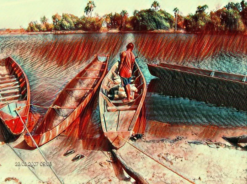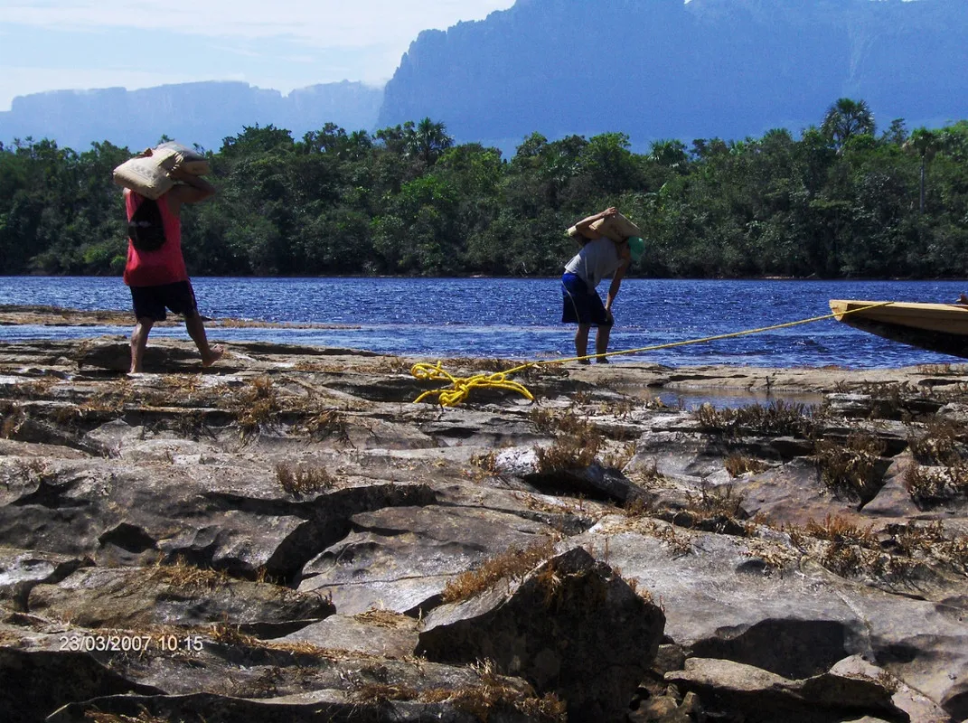 Hay espacios donde el nivel del rio esta bajo y hay que pasar a pie, esto implica descargar los materiales, pasarlos caminando y volver a retomar el curso fluvial!