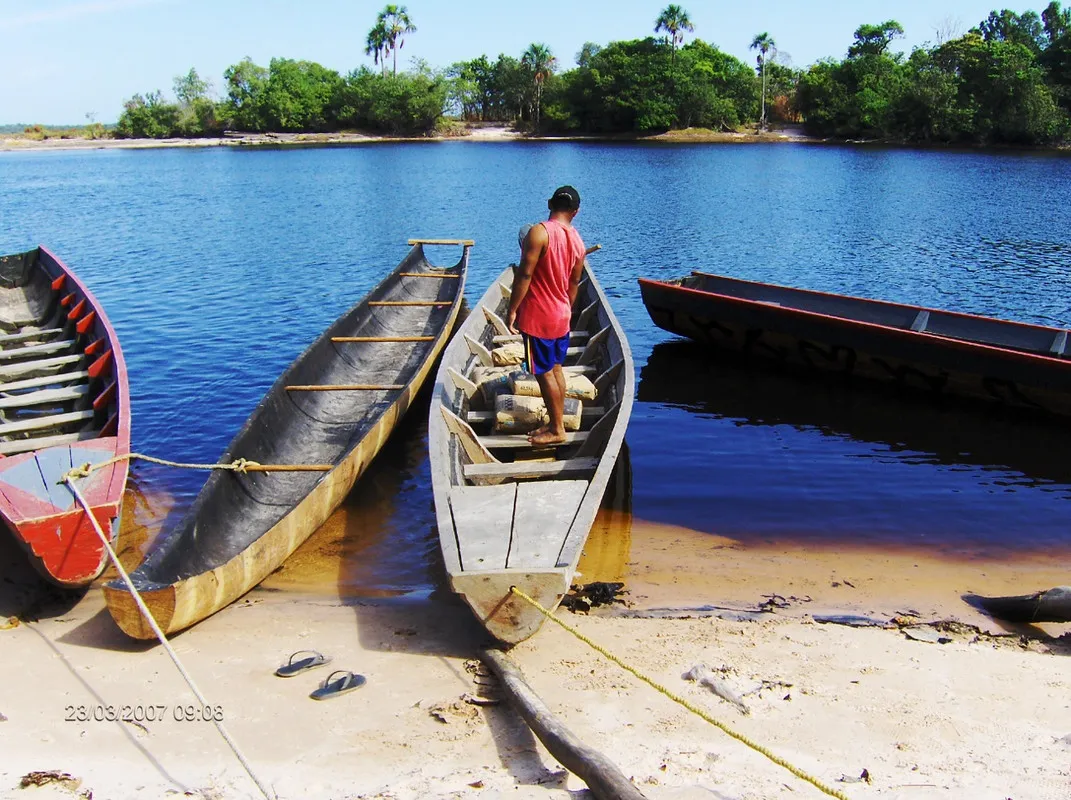 Fotografía original de las embarcaciones tipo Curiaras, utilizadas para transportar turistas y en nuestro caso todo el material a utilizar en la obra y el personal