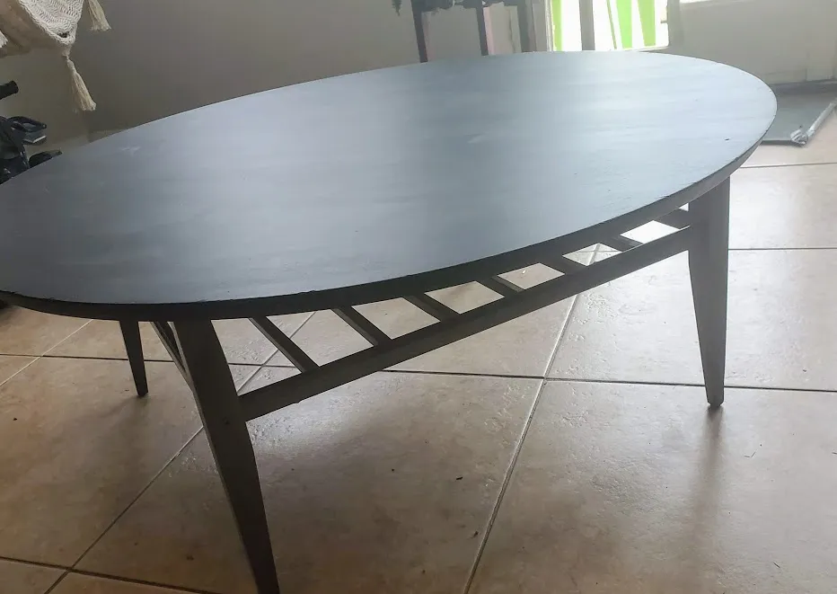 It was at the most recent gathering that one of the kids got sick, and a well meaning guest sprayed the coffee table down with bleach, destroying the laminate. It finally looked like it would be the end of my beloved coffee table, but then I remembered my good friend, chalkboard paint, that has resurrected many things in my life from certain death.