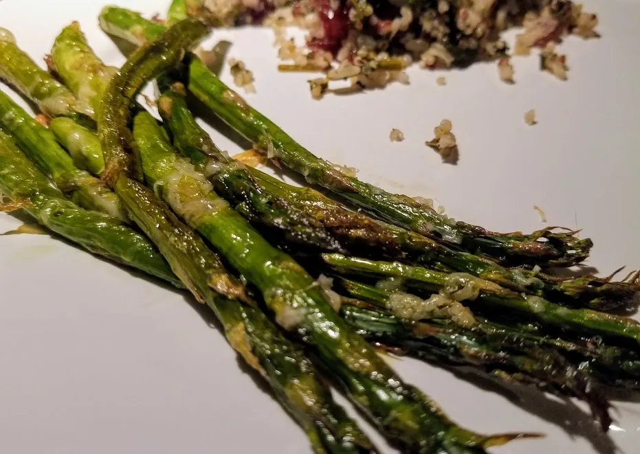 Thankfully, spring has some of the best fresh produce options. In season asparagus is fantastic, so I picked up a few bunches and made this delicious side dish with dinner tonight.