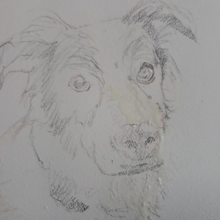 다시 중간색 털 표현을 위해 고무액으로 세밀한 털을 한번 더 입혀 줍니다.