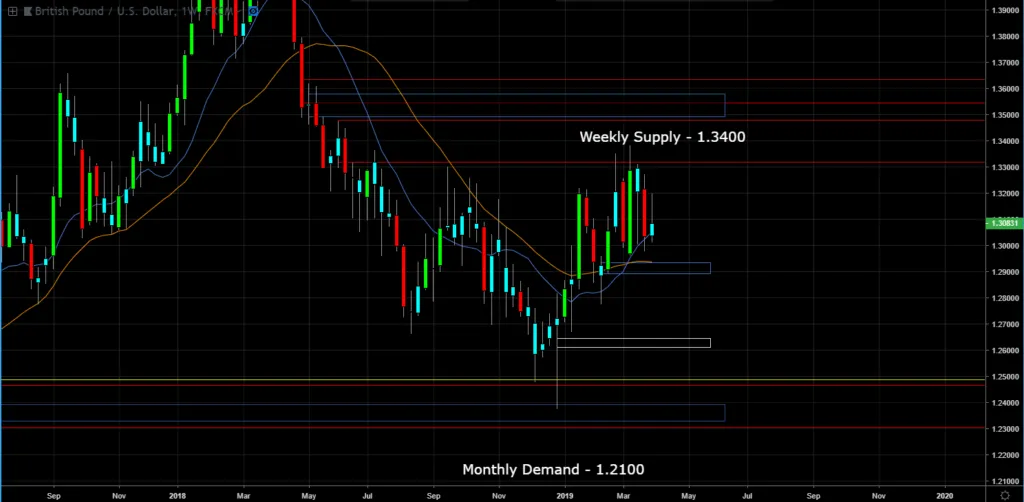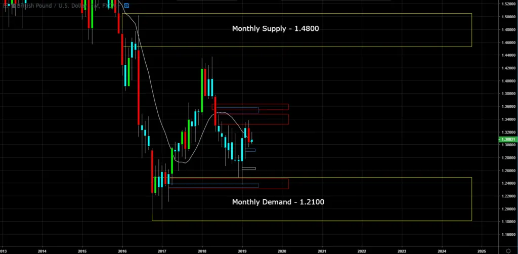 Monthly Chart (Curve Timeframe) - Monthly demand is at 1.2100 and monthly supply is at 1.4800.
