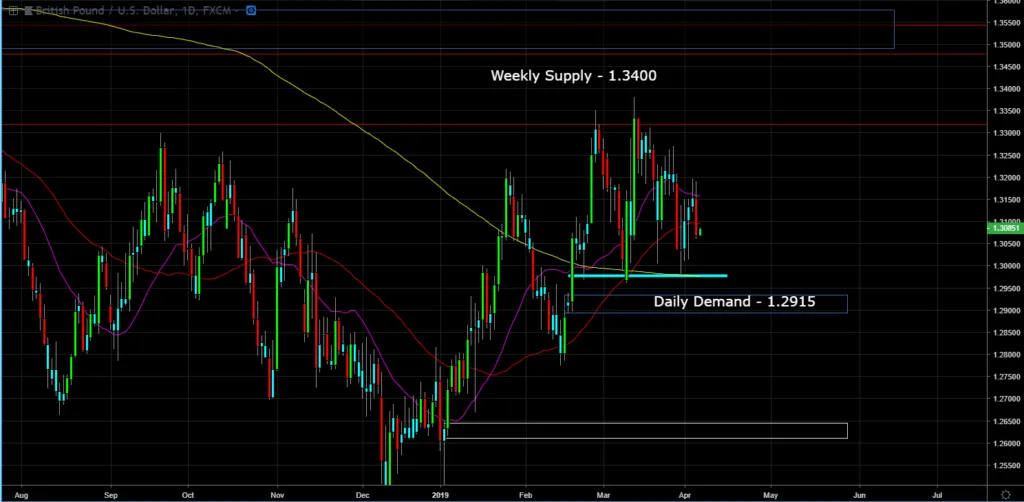 Daily Chart (Entry) – the momentum is up, however, saying with the narrative of the article, if the job report is strong, the US dollar should go up put downward pressure on the GBP/USD. However, there a nice bear trap sitting at the daily demand at 1.2915, which is a little over 150 pips below the current price.