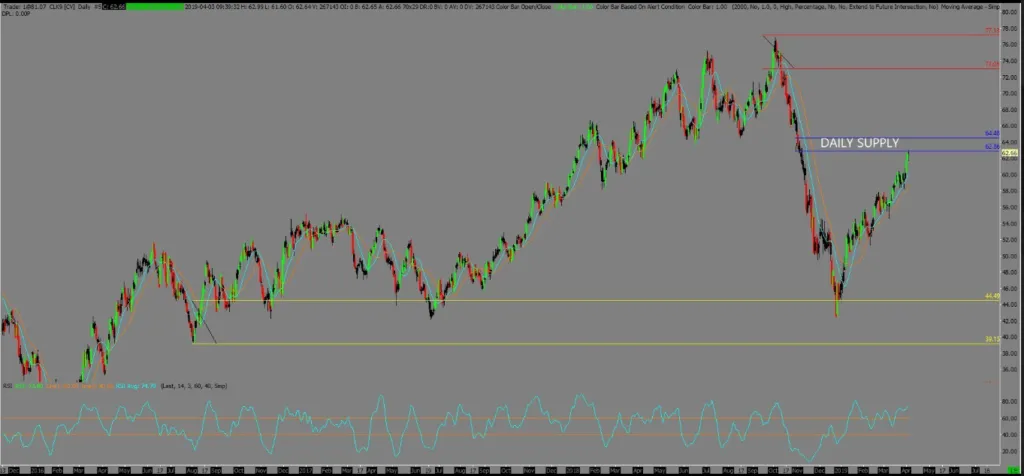 The Russell 2000 futures daily supply finally got breached after holding several times.