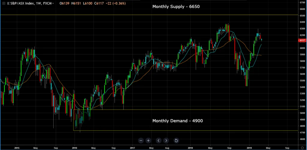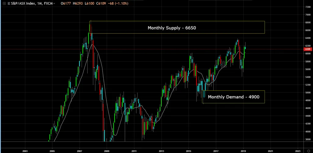 Monthly Chart (Curve Timeframe) – monthly supply is at 6650 and monthly demand is at 4900.