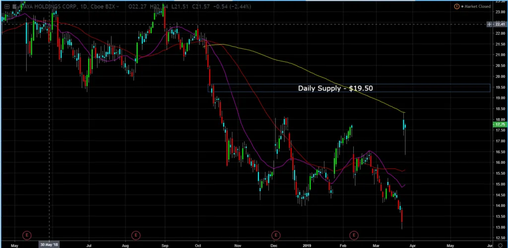 If the daily supply is breached, the next test will be the weekly supply at $22.