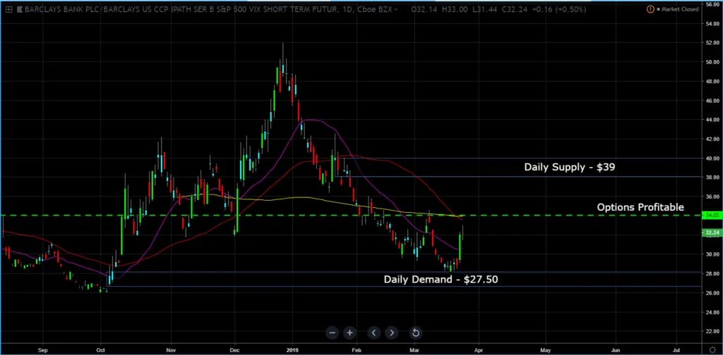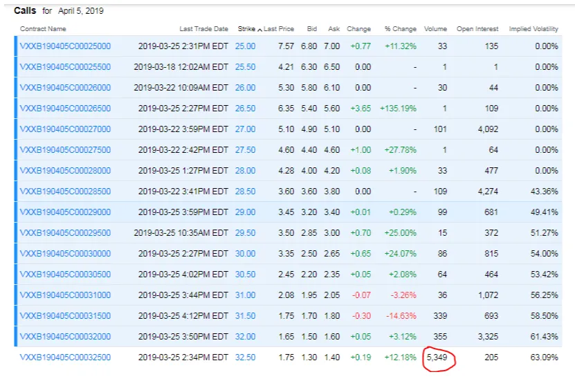 The VIX or fear gauge tends to increase when markets are decline. So it’ no surprise that I noticed unusual options activity in the iPath B S&P 500 VIX S/T Futs ETN (VXXB). This ETN is a popular option providing exposure to volatility with an average volume of about 8.3 million shares a day and $806.5 million in Assets Under Management (AUM). Yesterday the Smart Money bought over 5, 000 of the $32.50 strike, call options that expire in two weeks.