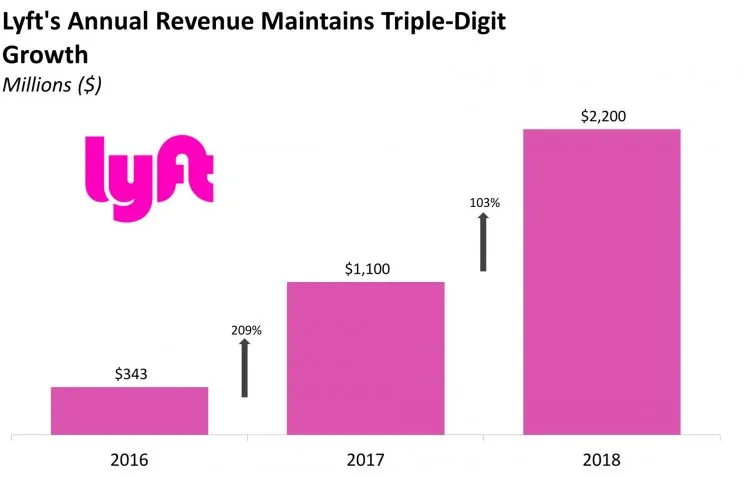 Lyft said 18.6 million people took at least one ride in the last quarter of 2018, up from 6.6 million in late 2016.