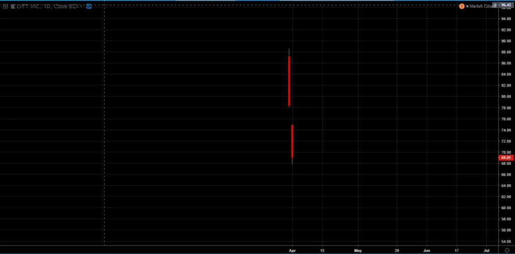 Lyft’s stock began trading close to $90 on Friday, but quickly retraced and closed at $78.29. On Monday, price fell again as institutional investors are questioning the company’s long term profitability in the soon to be era of autonomous vehicles, closing the day at $69.01, below the IPO price of $72.
