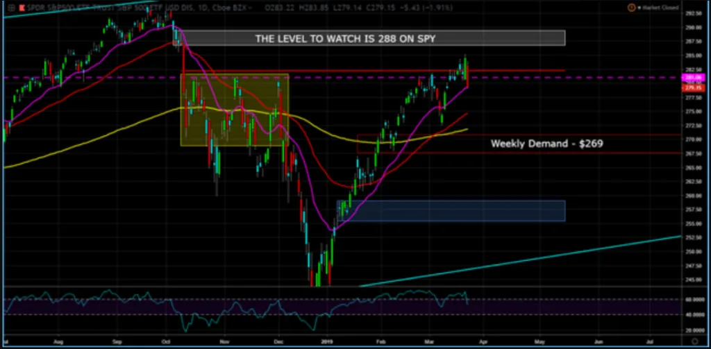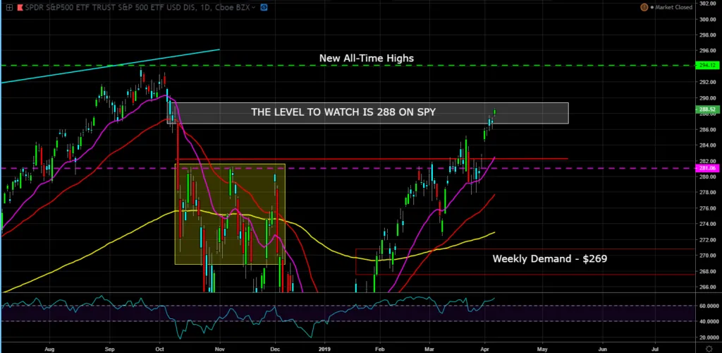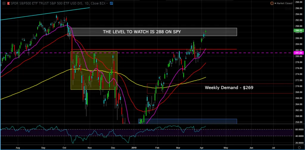 Fast forward one week and price not only took out last weeks high, but is now sitting in the daily demand at 288. This is the level I have been eyeing for the last two months.