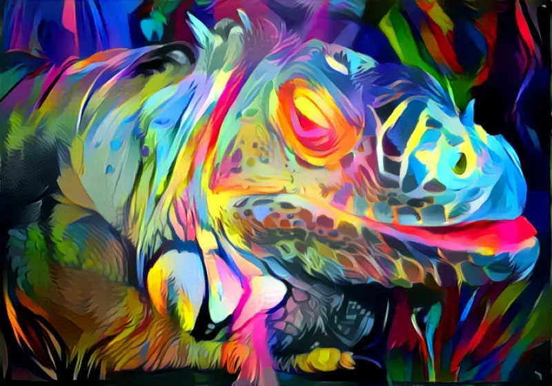 Iguana is a lizard, a descendant of dinosaurs. The work should emphasize its features and texture. Therefore, I think the last two images are not at all successful.