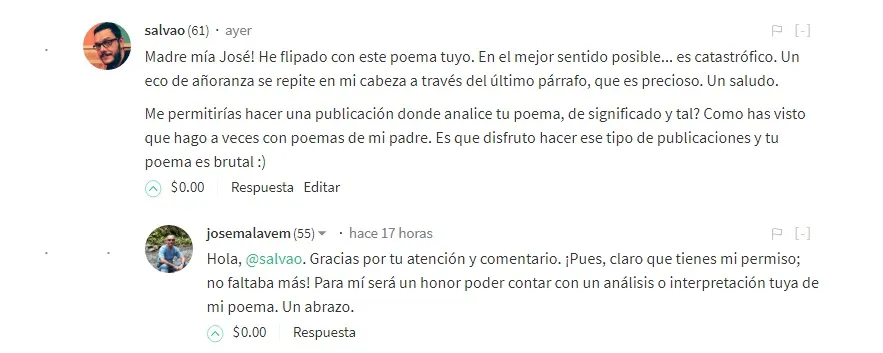 Tenemos un poema de métrica y rima libre, con alguna rima suelta y probablemente no buscada. Tal y como he leído ya en bastantes ocasiones, los poemas de @josemalavem obedecen más a un corte emocional y envolvente que a una musicalidad clásica y rimbombante. De estilo culto, siempre esconden un significado profundo que queda dibujado con sutileza y precisión, donde las palabras parecen haber sido elegidas y escritas con la mano lírica de un cirujano del lenguaje.