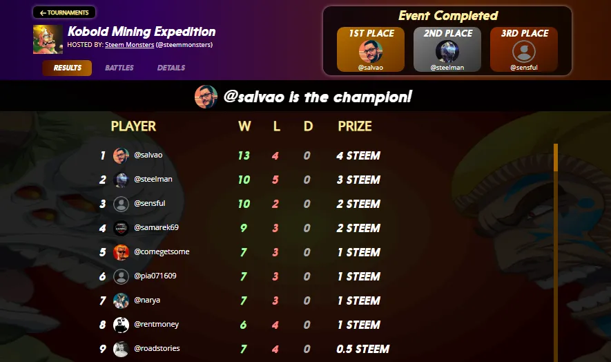 Y así ha sido, cuando menos lo espera... combate a combate, sangre por sangre. Hoy he conseguido ganar mi segundo torneo de SM, con limitante de cartas novice esta vez.