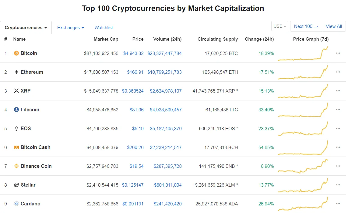 코인 마켓캡의 시세는 자고 일어나면 연신 신고가를 경신하고 있었고