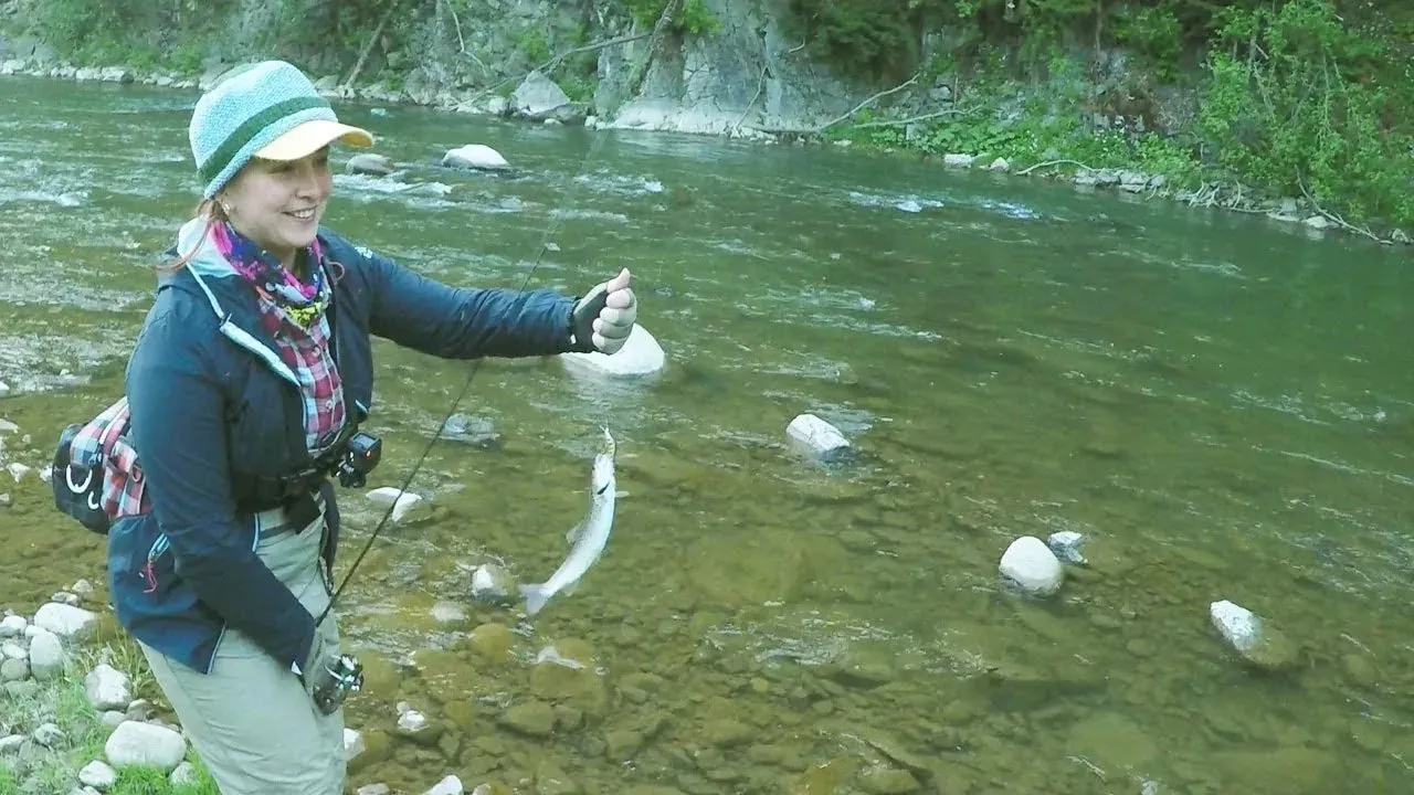 Today I want to introduce you to Tatiana. This girl is seriously interested in catching wild trout in mountain rivers. Tata is well equipped for such fishing and has excellent spinning gear. And the experience of wild trout fishing it's already quite serious. Let's watch a video story with her story at her favorite hobby...