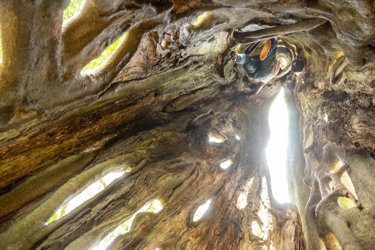 "Another cool discovery was the large trunk of a deceased tree, every inch of which has been carved into an intricate statue, with hundreds of human and animal figures piled on top of each other, in an eternal struggle to reach the top."