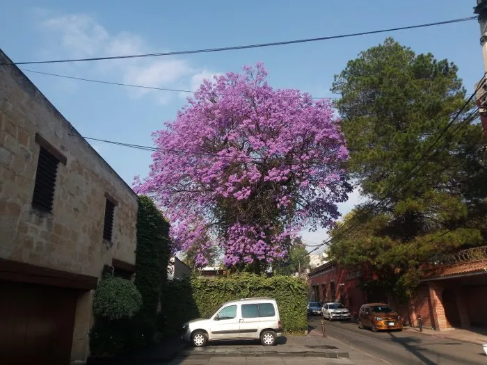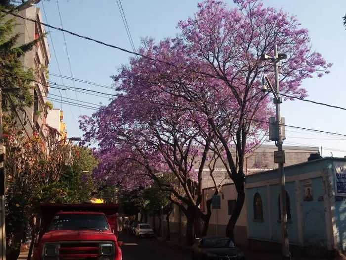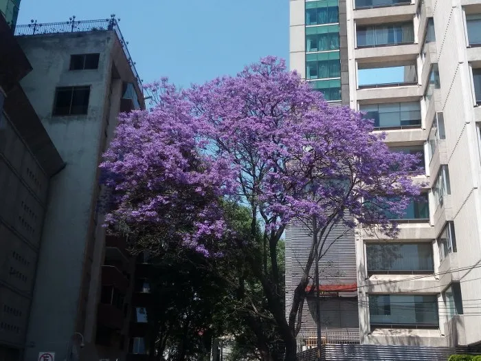 As typical as the Jacaranda is for Mexico today, it is in fact not endemic to this place. It comes from South America (Paraguay and Brazil), as the name is of Guaraní origin, meaning fragrant. It was introduced to Mexico City in the beginning of the 20th century by a Japanese gardener called Tasuguro Matsumoto, and his son Sanshiro. The president of the time, Álvaro Obregón, found such liking in these trees with their beautiful purple flowers, that he had several of them planted along the major streets of the city. This was the beginning of the Jacaranda craze in Mexico City, which has continued to this day.