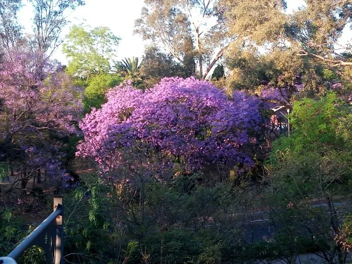 When in bloom, Jacarandas become unmistakable. It surprises me each time how many of them there are everywhere. At this time they grow a proper cloud of purpleness high up above the streets and buildings. In a week or so, they should also offer a nice purple carpeting on the ground, while the tree grows more flowers above. So sure, the fallen petals may be swept away by the wind and the locals, the tree is going to add more.