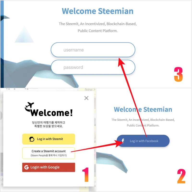 위 사진처럼 트립스팀 사이트에 가면 Steem people이라는 사이트를 통해서 소셜계정기준으로 아이디를 만들수 있다. 3번항목에 아이디와 비밀번호를 넣는데, 뭘 넣을지 고민을하다가 잘못눌러서 넘어가버렸다고 한다. (휴...ㅋㅋㅋ 이놈!!! ㅋㅋㅋㅋ)