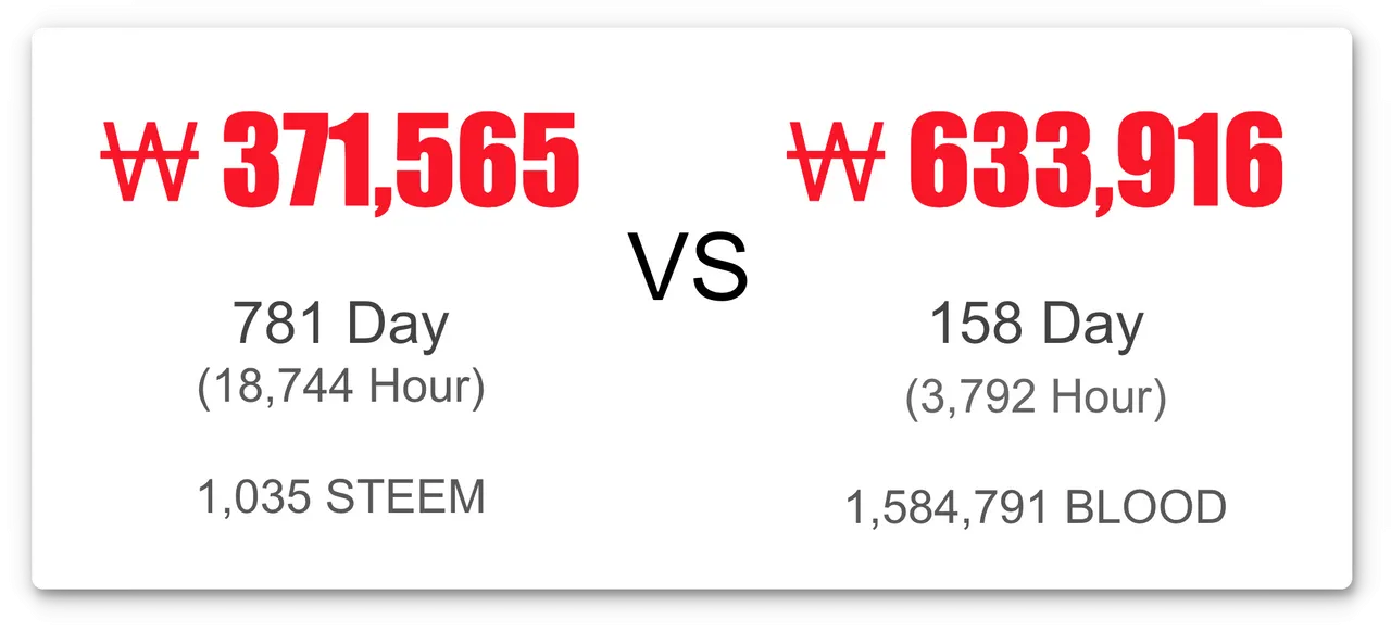 혹시 여기저기서 블러드 얘기할때, 그냥 스캠이라고 말만하고 채굴을 하지 않으신분들이 계실거라고 생각합니다. 하지만, 안타깝게도 그 스캠은 스팀잇보다 채산성이 좋습니다. ㅋㅋㅋ