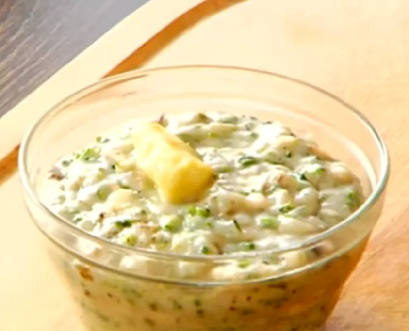 Add flour and mix so that there are no lumps. If it is too much, add more oil. Put sour cream in the same place.