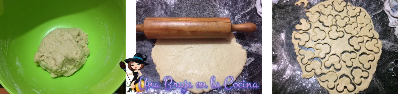Con nuestra masa lista, procedemos a extender con ayuda de un rodillo, hasta que la misma tenga unos 5 milímetros de espesor, para continuar cortándola con nuestros moldes, si no tienes moldes puedes utilizar un vaso, o cortar figuras con ayuda de un cuchillo, luego con ayuda de un tenedor pinchamos nuestras galletas y las disponemos en una bandeja, llevamos a un horno pre calentado a 180 °C por 15 minutos o hasta que se empiecen a ver doradas por la parte de abajo. Y listas nuestras galletas, solo nos queda dejar enfriar y degustar.