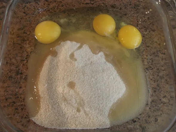 Batimos el azúcar con los 3 huevos, a velocidad media por 5 minutos, hasta tener una mezcla homogénea.
